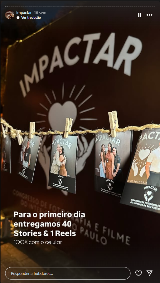 Stories com estratégia e intencionalidade. Em eventos e festas, registramos e postamos tudo em tempo real (real time), com criatividade, leveza e técnica.
